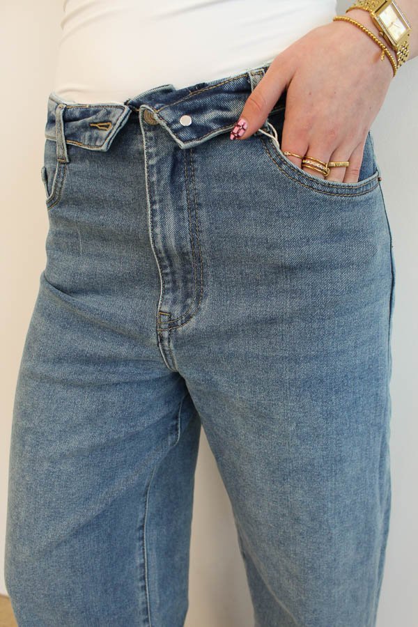 Wide jeans omgeslagen taille
