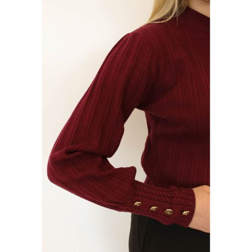 Een fijngebreide truitje met lurex (glitter) in verwerkt. Deze heeft knoopjes en volant mouwen. Heel erg leuk te combineren voor een feestelijk gelegenheid of straks met de feestdagen voor op een pantalon of rok!