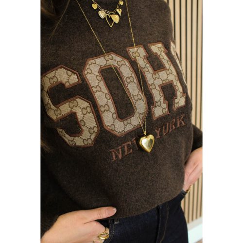 Een fijngebreide truitje met lurex (glitter) in verwerkt. Deze heeft knoopjes en volant mouwen. Heel erg leuk te combineren voor een feestelijk gelegenheid of straks met de feestdagen voor op een pantalon of rok!