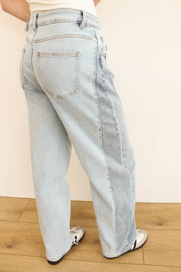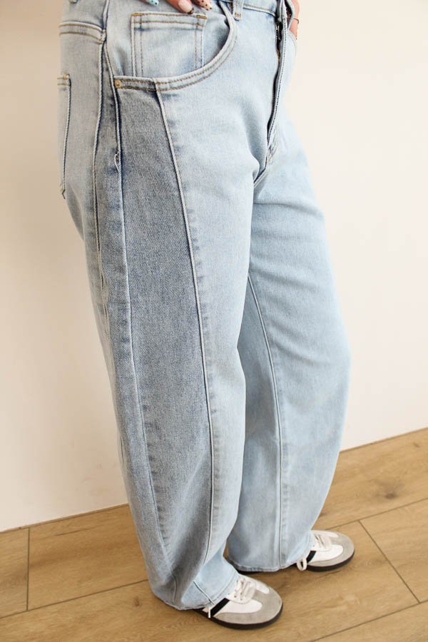 Een trendy balloon jeans met two-toned vlakken voor een opvallende en moderne look. De speelse pasvorm en het kleurcontrast maken deze broek helemaal van nu. Perfect om je outfit een unieke en stijlvolle touch te geven.
