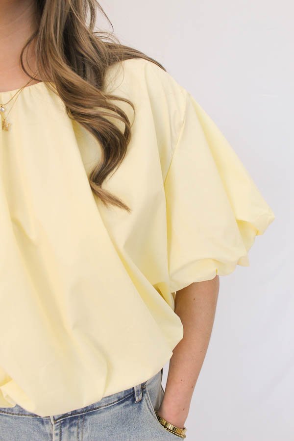 Mooi topje!💛 Het heeft echt dat “pof balloon effect” door de wijde, luchtige mouwen en de zachte plooien. Verkrijgbaar in meerdere kleuren.