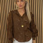 Mooie blouse met motief en lange pofmouwen. Deze blouse is écht een musthave deze herfst in prachtige kleur bruin. Ook verkrijgbaar in beige.