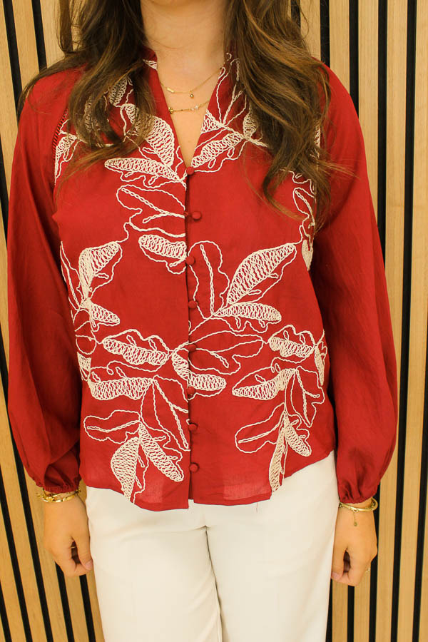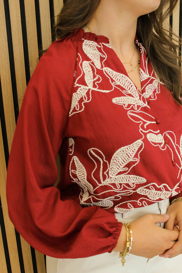 Blouse met borduursel bordeaux | Valeria