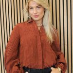 Deze blouse top is net binnen en wat een prachtige herfst kleur is dit. Deze blouse heeft een krinkel stof, knoopsluiting en is gevoerd met elastiek aan de onderkant (zit niet strak, zorg voor poffend effect).