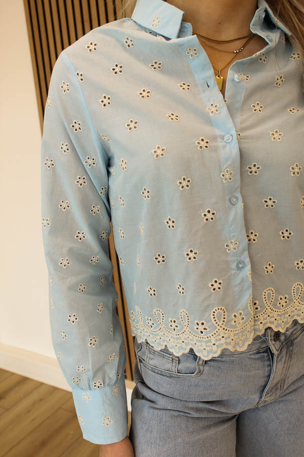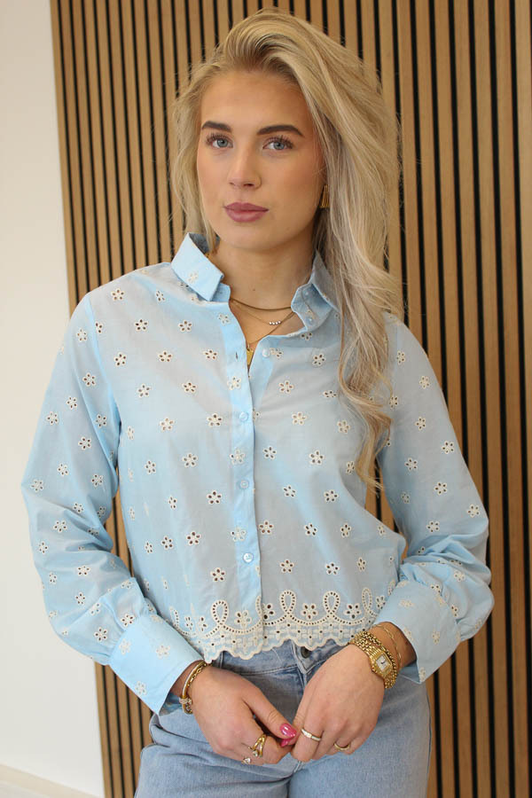 Een zomerse stof luchtig blouse met v-hals en bloemenprint. Deze is er in verschillende kleuren en perfect te combineren op een rok of pantalon.