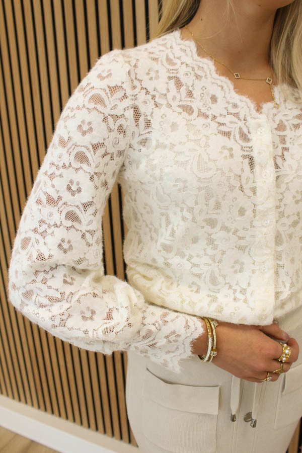 Kanten top knopen ecru | Gilda