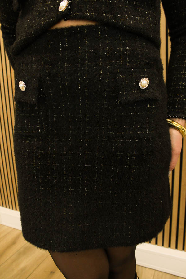 Deze mooie boucle rok is prachtig mooi en zacht. Heeft elastische tailleband en combineer deze als set met jasje Coco!