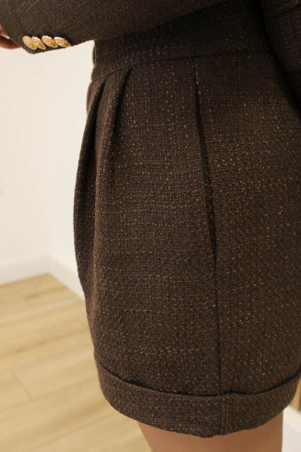 Mooie short met een ceintuur detail én ritsluiting. Deze heeft zakken én is van mooie elegantie boucle stof. Wil je er een statement look van maken? Combineer het dan als set met onze Blazer Mare!