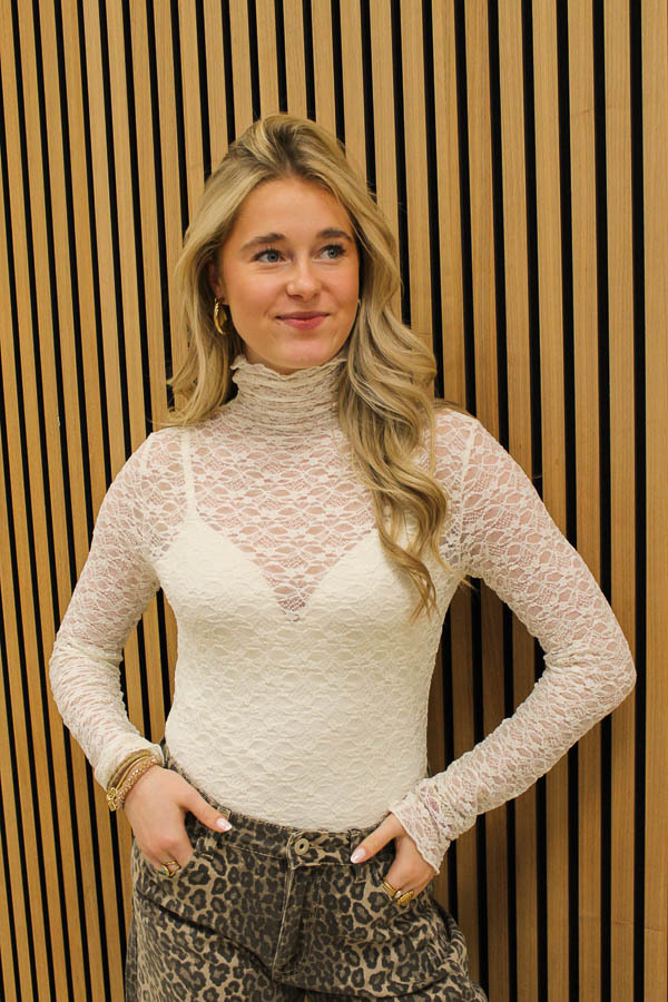 Kanten hals top ecru | Laar