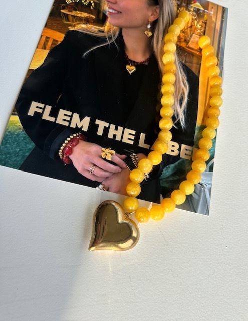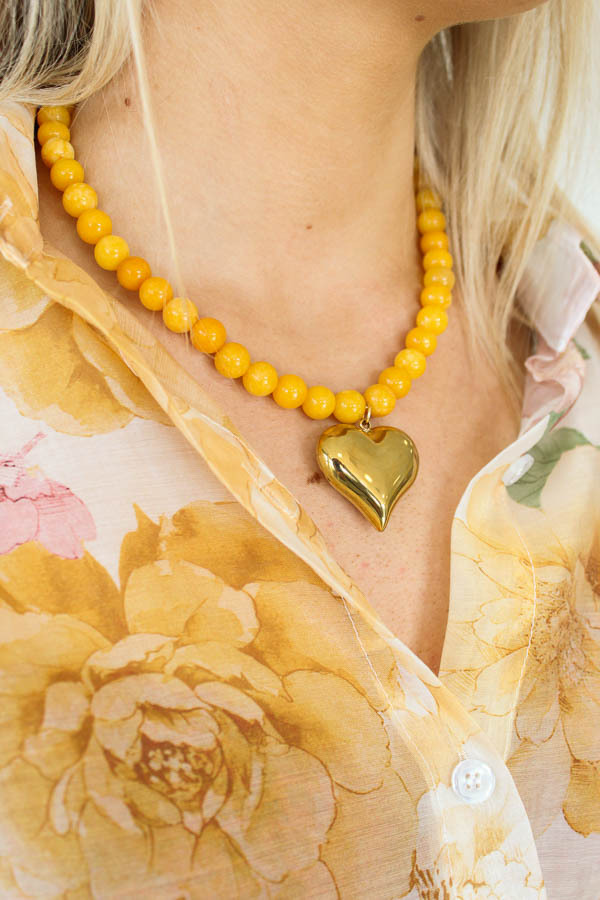Kralenketting parel geel hart