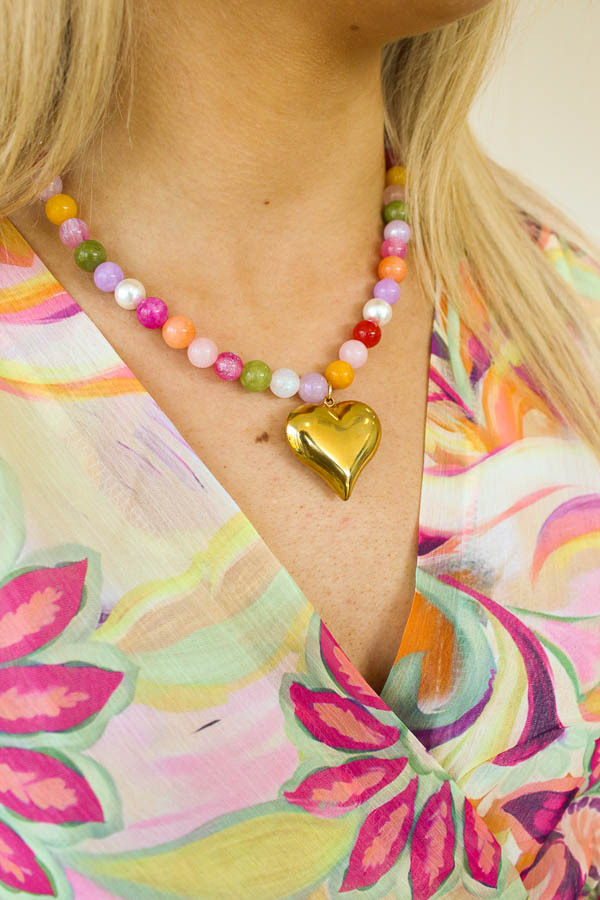Kralenketting parel multi hart