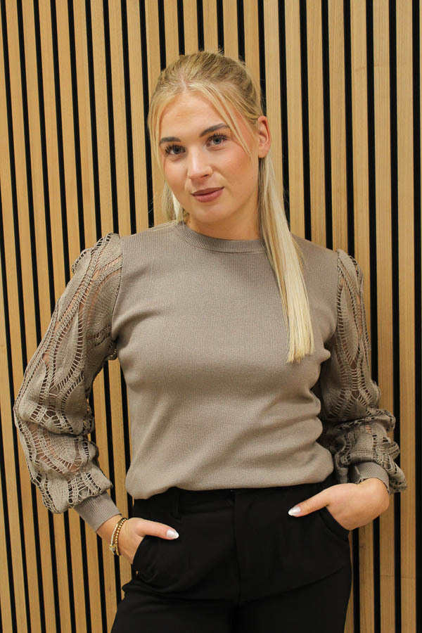Kanten trui taupe | Lize