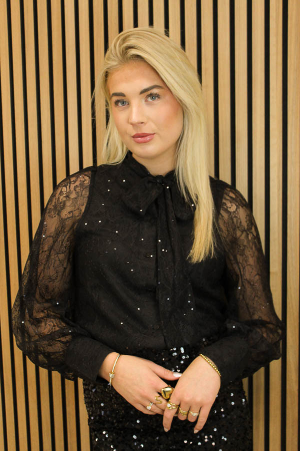 Strik blouse glitter zwart | Yill