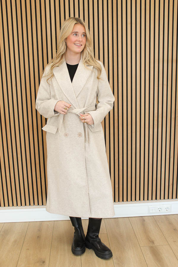 Lange jas met ceintuur zand