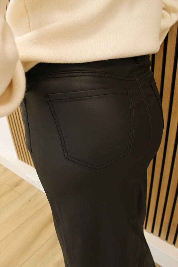 Mooi coated rok in midi lengte met rits en knoopsluiting. Deze rok heeft een stretch stof en sluit goed aan. Rok heeft een bekend split van voren die nu erg trendy is deze najaar!