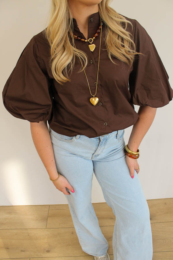 Blouse pofmouw bruin | Poppy