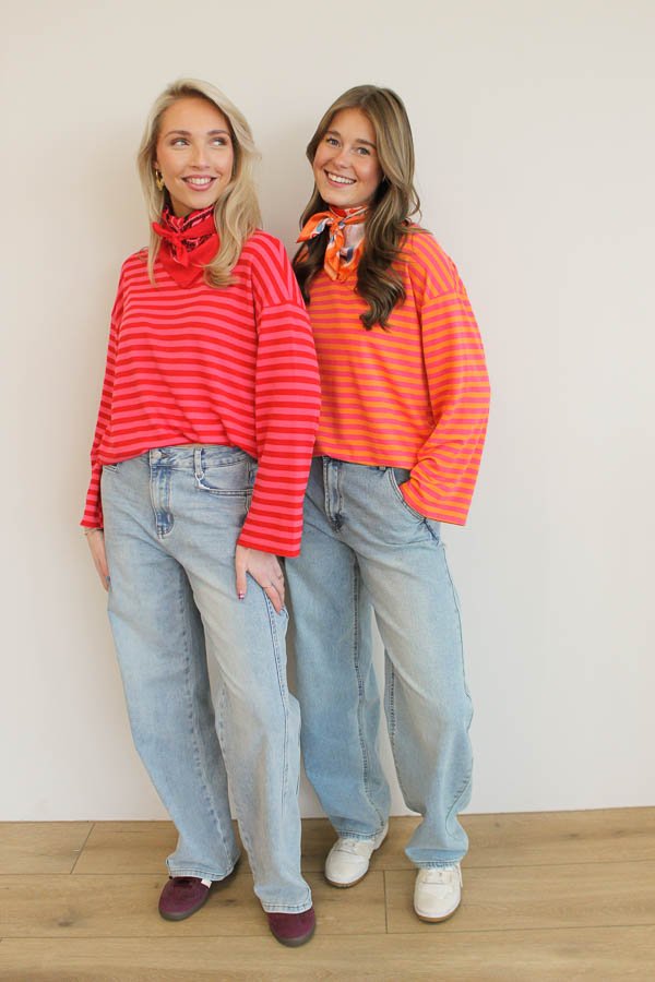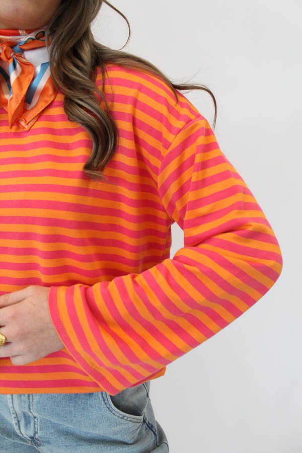 Gestreepte longsleeve oranje