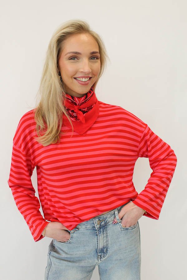 Gestreepte longsleeve rood