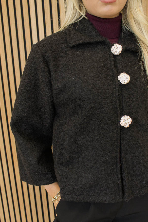 Een elegante faux fur jas met knopen en volant mouwen. Deze jas heeft zijzakken en is perfect voor de najaar. Deze kriebelt niet en voelt lekker zacht en soepel. Je shopt deze nu in verschillende kleuren voor een lief prijsje!
