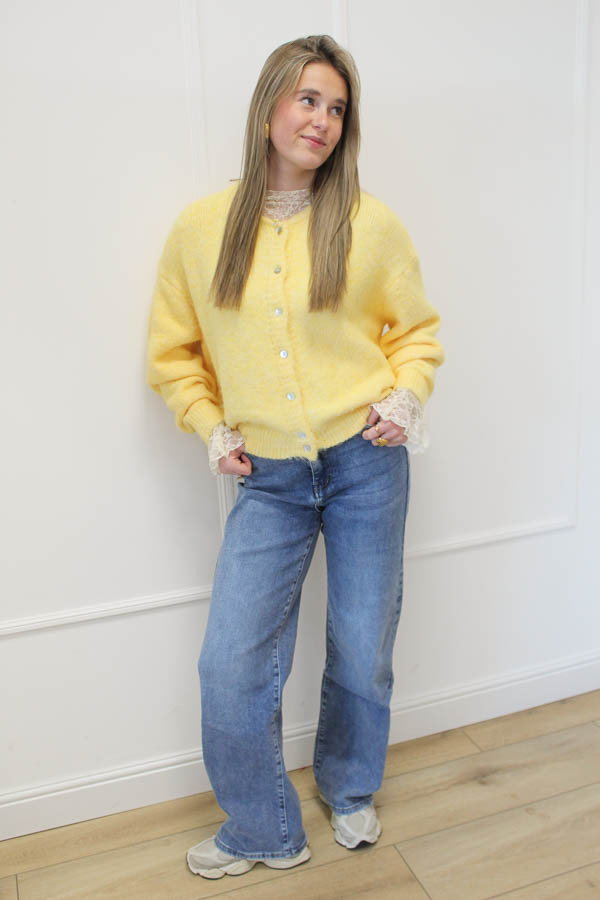 Begin van het jaar krijgen we altijd wel vestjes binnen in de leuke voorjaarskleuren! Deze is ook zo'n leukerd! Heeft een zachte stofje en mooie parelmoer knoopjes. Deze is tijdloos en verschillende manier te combineren. Draag het met een coltop of blouse met kraag of gewoon zo als een trui!