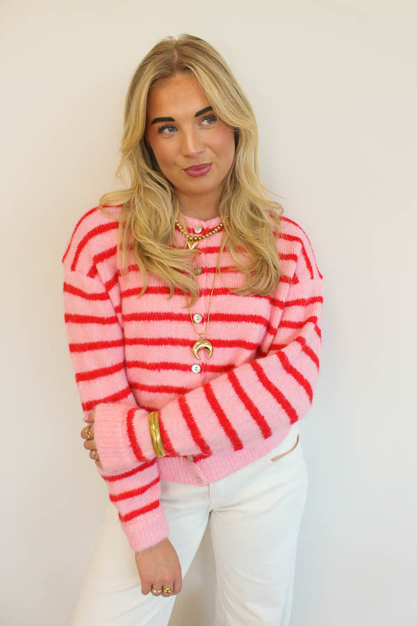 De nieuwe variant van ons bestseller-vest Lilly is er, nu met frisse moderne strepen. Het vest is heerlijk zacht en zit supercomfortabel. Dankzij de parelmoer knoopjes kun je het zowel open als dicht dragen, zelfs als trui voor een veelzijdige look.