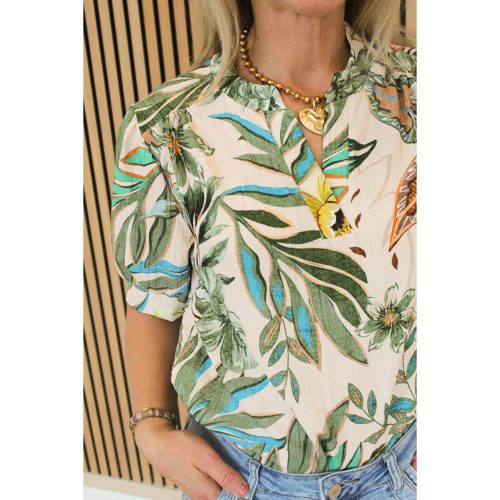 De blouse is one-size (36 t/m 42) en heeft lange mouwen, een overhemdmodel, een borstzakje en strass steentjes all-over voor een extra touch of glamour.