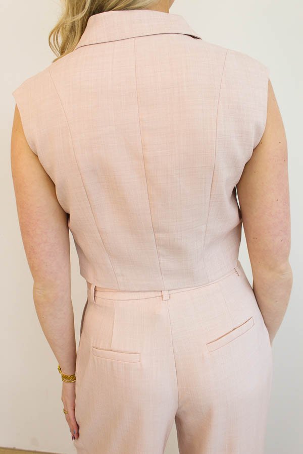 Een nauwsluitend, mouwloos giletje met knoopsluiting van mooie kwaliteit. Deze is als set super gaaf te combineren. Shop de bijpassende wide pantalon Lisa voor een statement look! Deze pakken verkopen wij heel erg goed bij ons in de winkel!