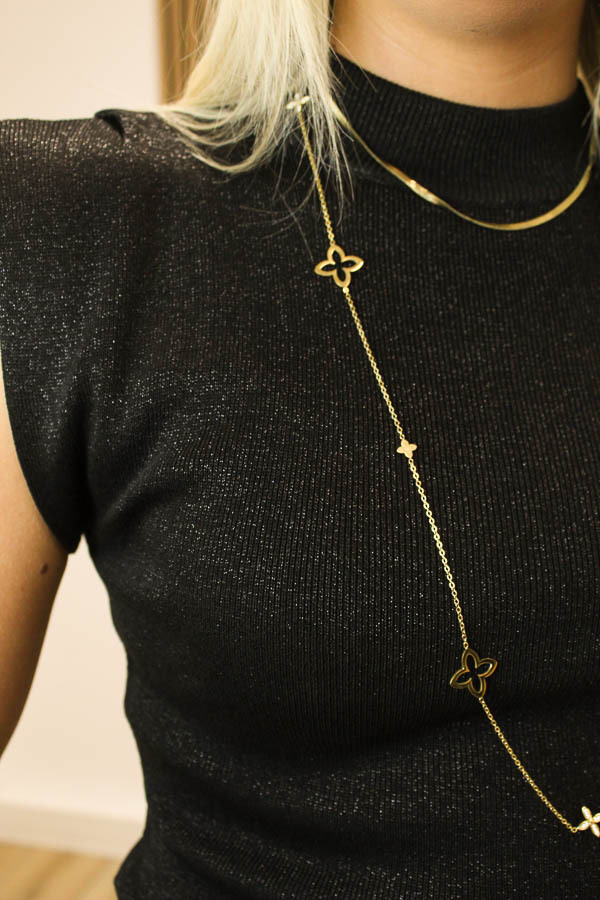 Mouwloos fijngebreide jurk van mooie kwaliteit. Deze jurk heeft een hoge hals en sluit goed aan. Er zit voldoende stretch in wil je beetje uitbuiken na de kerst maaltijd! 🙂 Ook heeft deze jurk een subtiel zwart glittertje voor een feestelijke look!