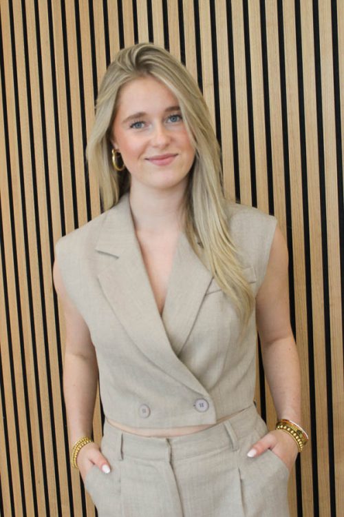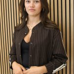 Een comfy fijne stof bomber jasje met strepen en een opvallende bies! Deze heeft drukknopen en een elastische band. Heel gaaf op een stoere jeans!