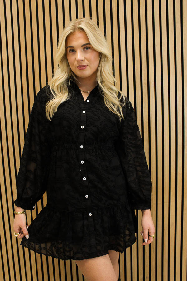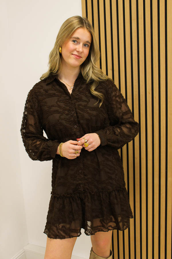 Deze jurk heeft een subtiele glitter en benadrukt de taille voor een mooie, vrouwelijke pasvorm. Ideaal voor een feestelijke gelegenheid!