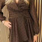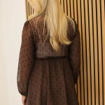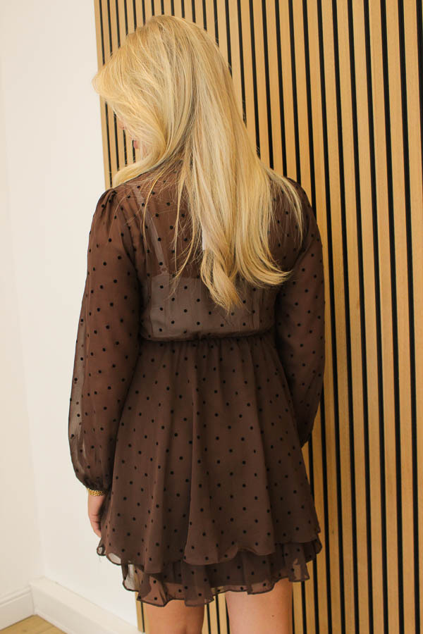 Jurk met luchtig stofje, leuk voor een feestelijk gelegenheid! Deze heeft de trend van polka dots en heeft ruffels.