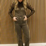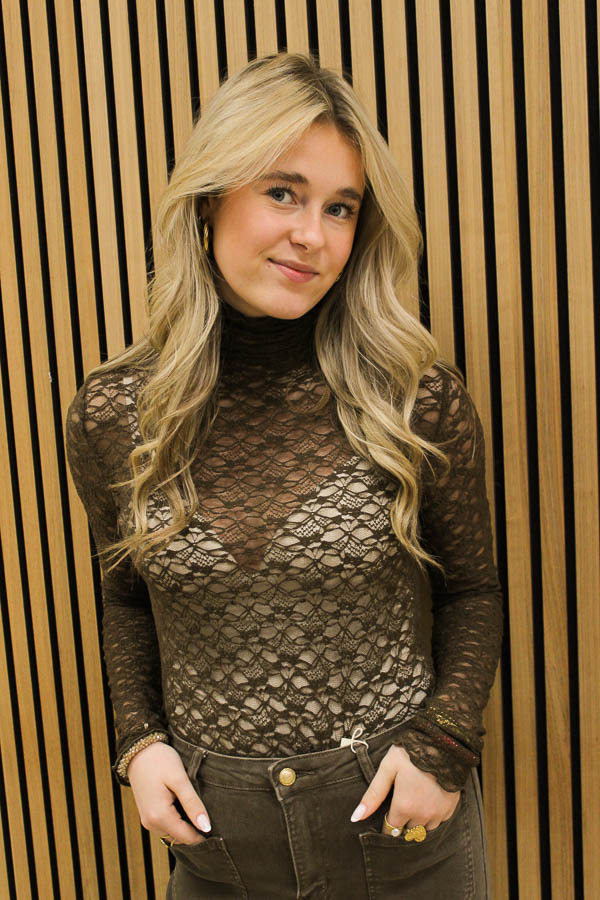 Kanten hals top bruin | Laar