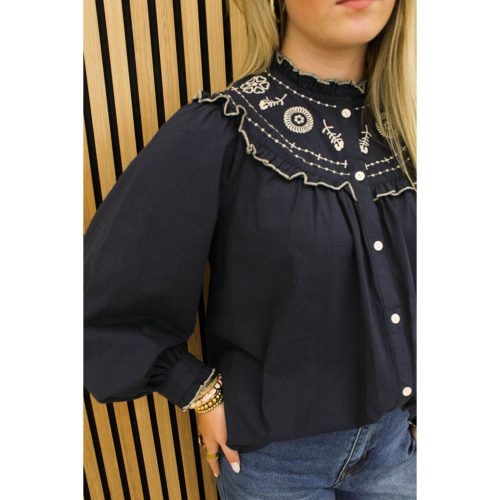 Een kanten top met ronde hals en kant verwerkt bij de mouwen en onderkant. Heerlijk luchtig stofje perfect voor de lente/zomer!