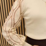 Fijngebreide top met ronde hals en geribd gebreid. Deze truitjes hebben mooie kanten pofmouwen. Een bestsellertje uit onze winkel dames! Deze kan je eindeloos combineren voor casual én feestelijk!