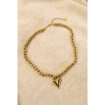 Kralen ketting van compleet goud kleur, deze is stainless steel en heeft een hartje als bedel. Tijdloos en altijd leuk te combineren met verschillende outfits!