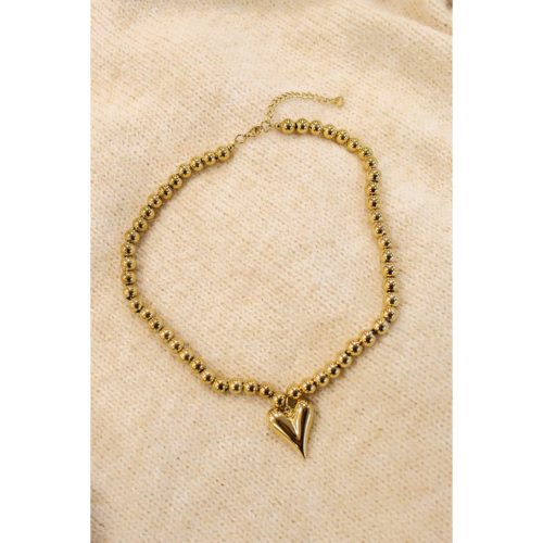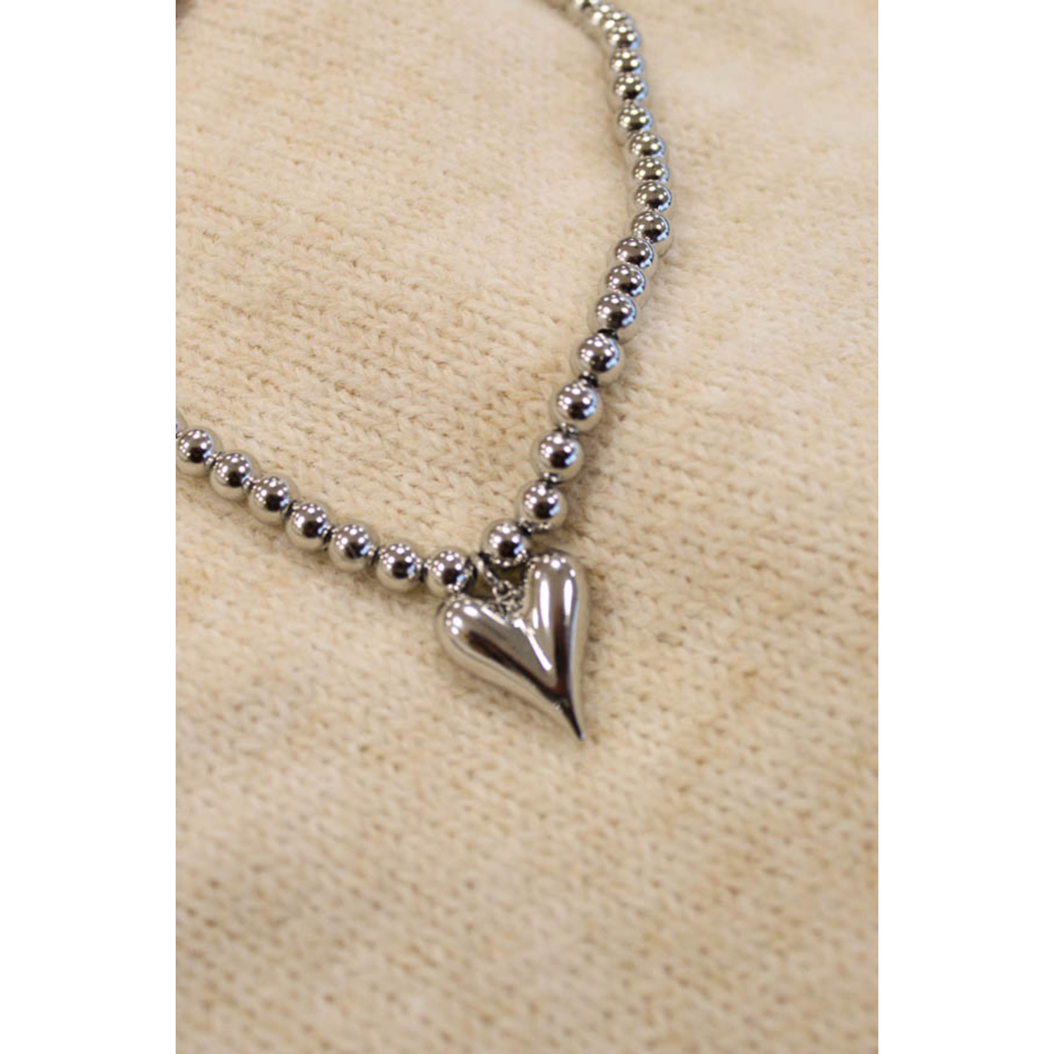 Kralen ketting van compleet zilver kleur, deze is stainless steel en heeft een hartje als bedel. Tijdloos en altijd leuk te combineren met verschillende outfits!