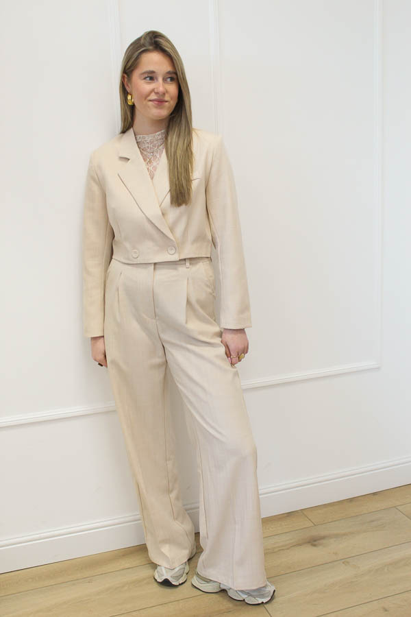 Gave crop blazer met knopen. Deze kan je als set combineren met de pantalon Malou. Wat een gave pak is dit!