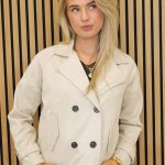 Een korte trenchcoat jasje in suedelook met comfy stof dankzij de stretch zit deze erg comfortabel en casual. Verkrijbaar in meerdere kleuren.