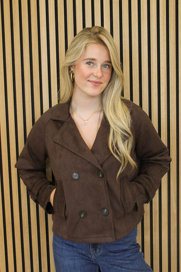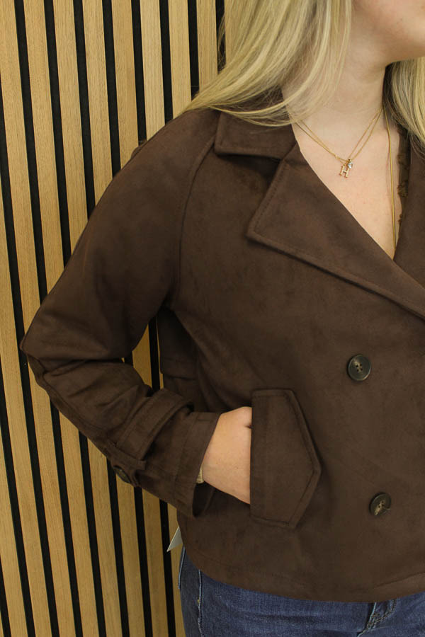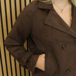 Een korte trenchcoat jasje in suedelook met comfy stof dankzij de stretch zit deze erg comfortabel en casual. Verkrijbaar in meerdere kleuren.