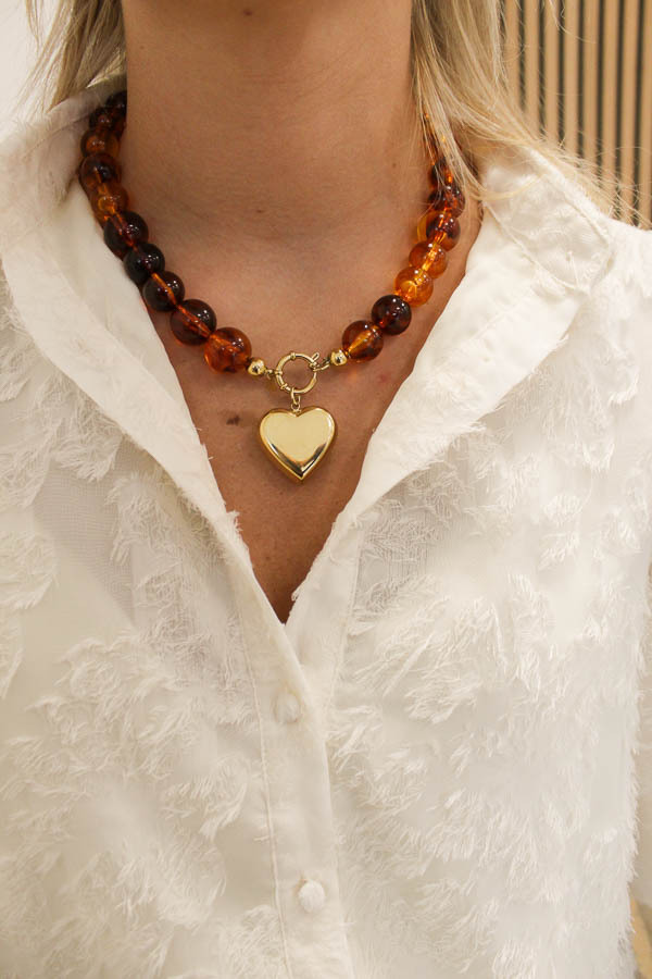 Een balletjes kralen ketting met mooie stainless steel slotje én hartje!
