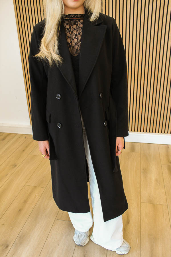 Lange jas met ceintuur zwart