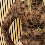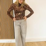 Een leuke top stretchy stof, ronde hals en bloemen print. Deze top is van mooie chocobruine kleur en past perfect in je herfstgarderobe!