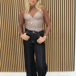 Trend alert! Polka dots top zie je nu veel voorbij komen! Wij vinden deze trend super leuk! Deze mesh top is bruin met witte stippen en is leuk te combineren met onze jeans en pantalons!