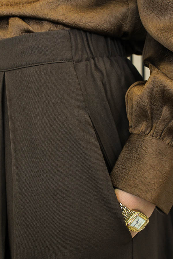 Een prachtige rok in midi lengte met elastische tailleband en zakken. Deze is in 2 kleuren verkrijgbaar. Combineer deze rok met onze tops of truitjes uit ons nieuw collectie.