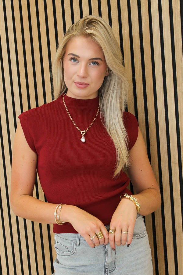 Mouwloze top met hoge hals en perfect voor onder blazers of voor een avondje uit als top! Bestseller uit onze winkel!!