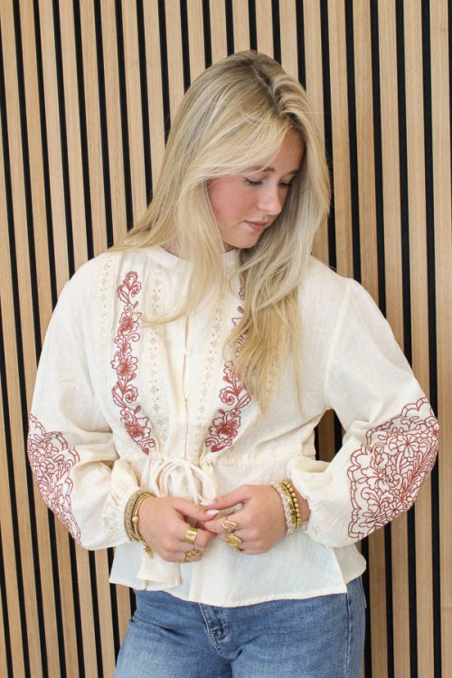 Blouse borduursel beige | Yola