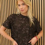 Leuke top met pailleten, bloemenprint en korte mouwen. Erg leuk voor een feestje!