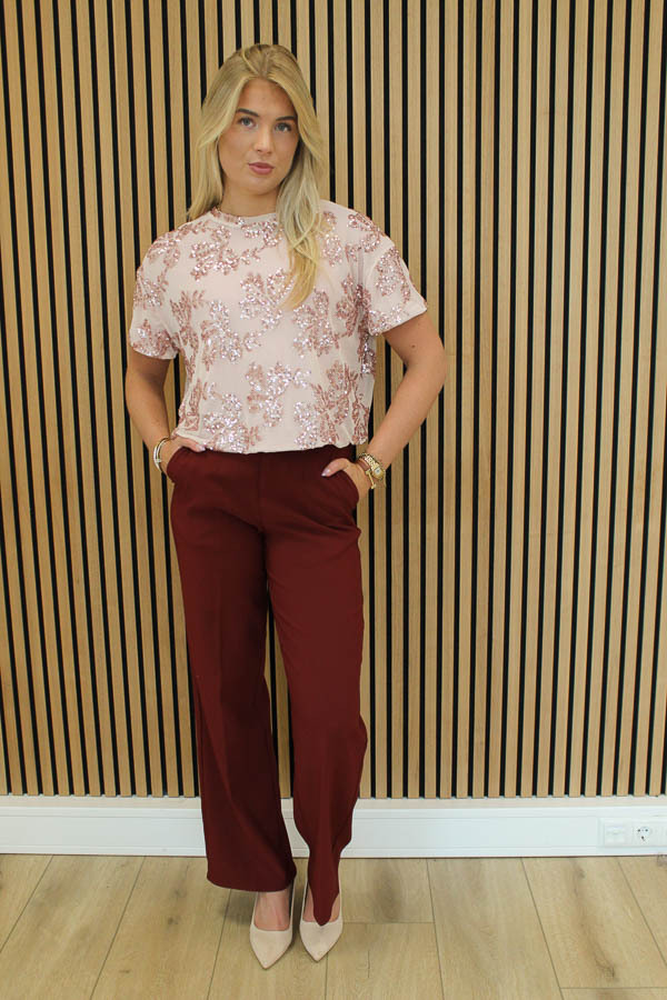 Leuke top met pailleten, bloemenprint en korte mouwen. Erg leuk voor een feestje!