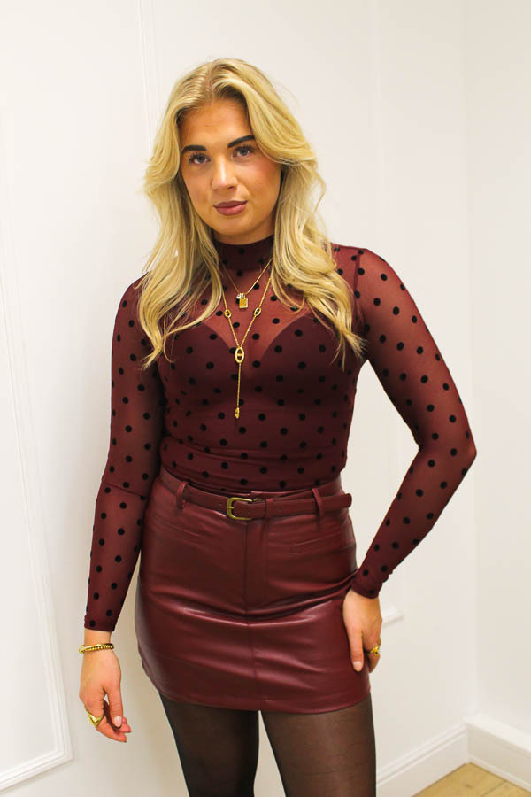 Mesh dots top bordeaux | Polka