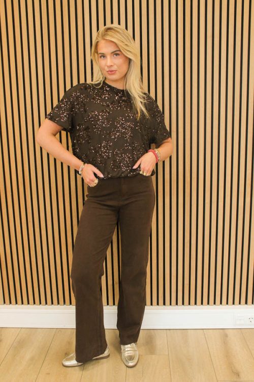 Pailletten top bruin | Avelijn